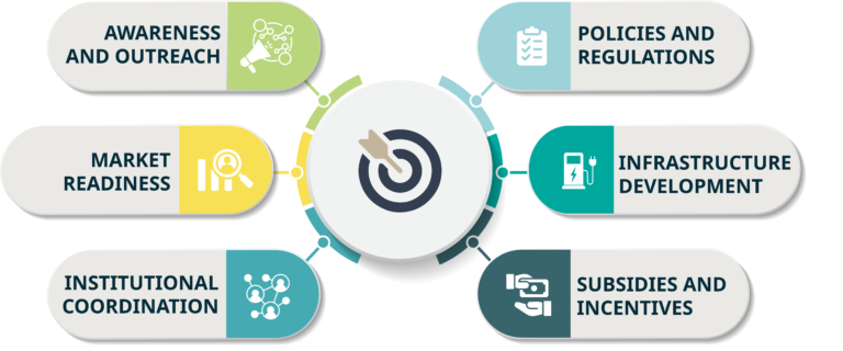 The EV Readiness Framework enables the government to clearly understand highlighting what is working well and identifying areas that need further attention in planning, technology, and skills development. The assessment pinpoints critical gaps in infrastructure, institutional capacity, and governance that could also otherwise slow down EV adoption.
